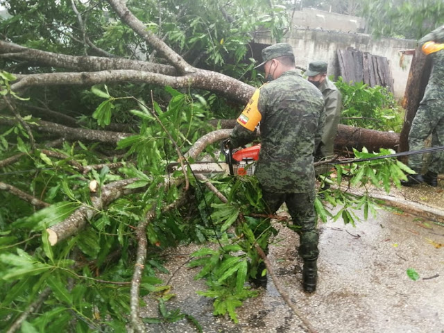 Valladolid, Yucatán .- La Secretaría de la Defensa Nacional, a través de la X Región Militar y la 32/a. Zona Militar, informa a la ciudadanía que, con motivo de los efectos ocasionados por el Huracán “Delta”, elementos del Ejército y Fuerza Aérea Mexicanos, continúan aplicando el Plan DN-III-E en su fase de “Auxilio” de manera ininterrumpida.