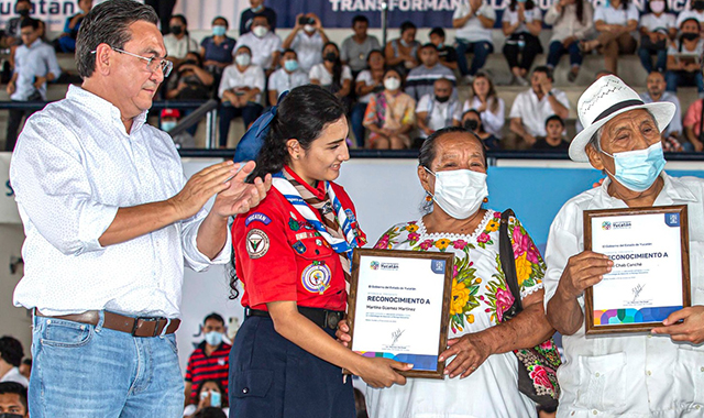 Mencionó la entrega de Certificados de Educación Básica a más de dos mil personas de Mérida, Kanasín, Progreso y Umán, quienes forman parte de los 12 mil yucatecas y yucatecos, de 16 municipios con mayor rezago educativo, que terminan su primaria y secundaria.